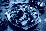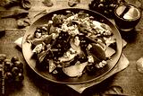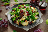 Fresh Pears, Blue Cheese salad with vegetable green mix, Walnuts, red grapes. healthy food