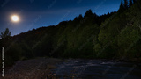 Summer mountain stream of the lunar night in the Bieszczady Mountains