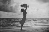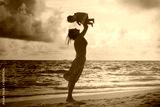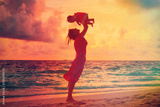 mother and daughter having fun at sunset beach