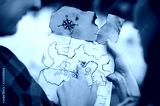 Couple of lovers holding a pirate map in hands and looking for treasures. Romantic quest journey concept. Love story
