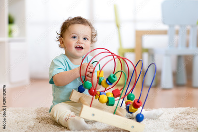 baby child playing with educational toy in nursery