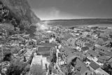 Town of Omis coast and rooftops panoramic view