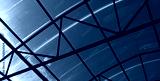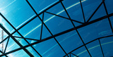 Blue glass roof. Glass architecture. Abstract blue background. Indoor pavilion. Modern architecture