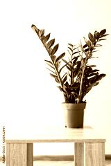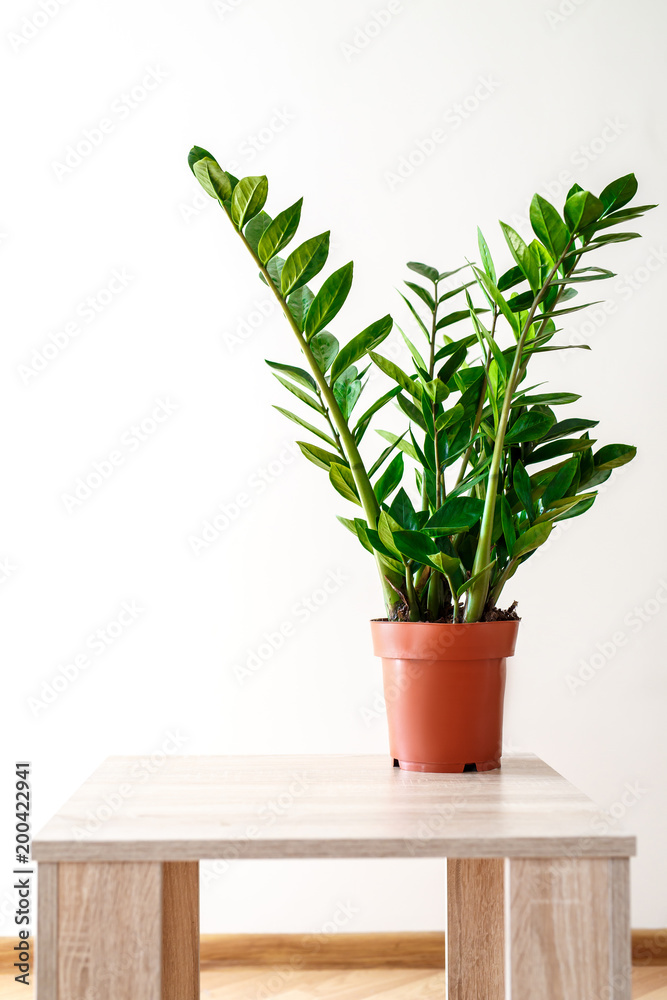 Plant in the pot, Green leaves of Zamioculcas on white background