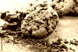 Chocolate cookies on grey table. Chocolate chip cookies shot