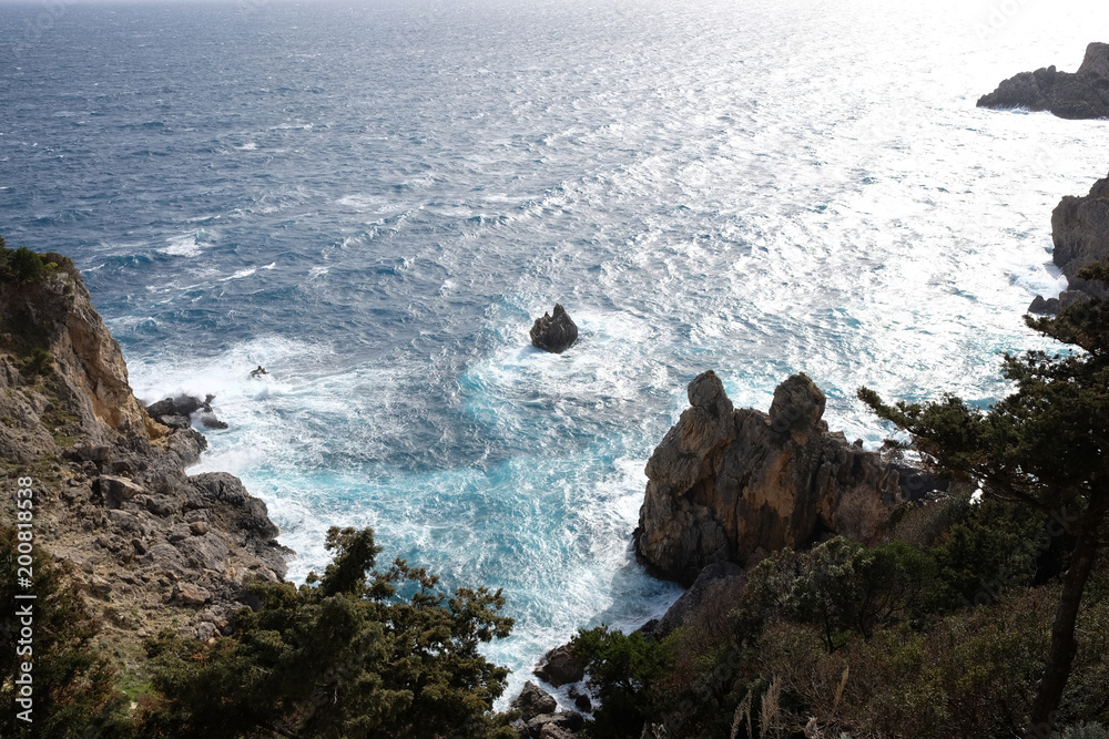 Beautiful rocky coast in Paleokastritsa in Corfu, Greece
