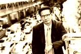 Happy businessman going up the stairs and bad traffic in a hurry in rush hour