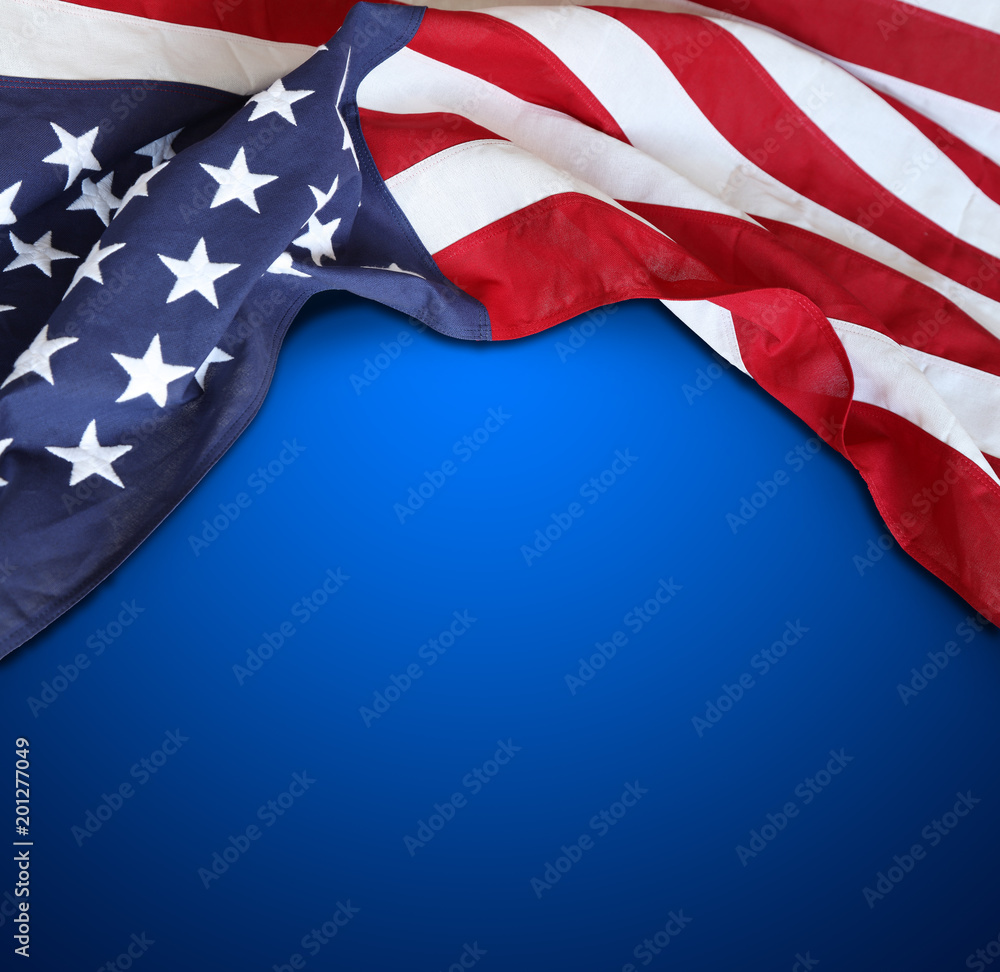 American flag on blue
