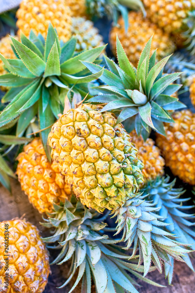 victoria pineapples on local market of Saint-Pierre, Reunion Island
