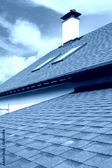 Roofing construction and building new house with modular chimney, skylights, attic, dormers and eaves