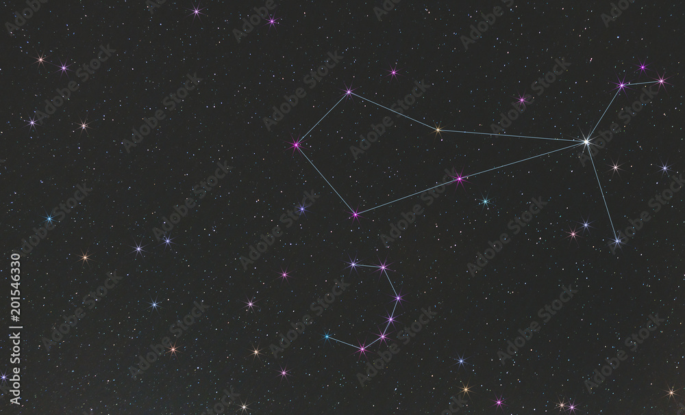 constellation corona borealis and bootes in the endless expanse of the night sky, a real photo of deep space