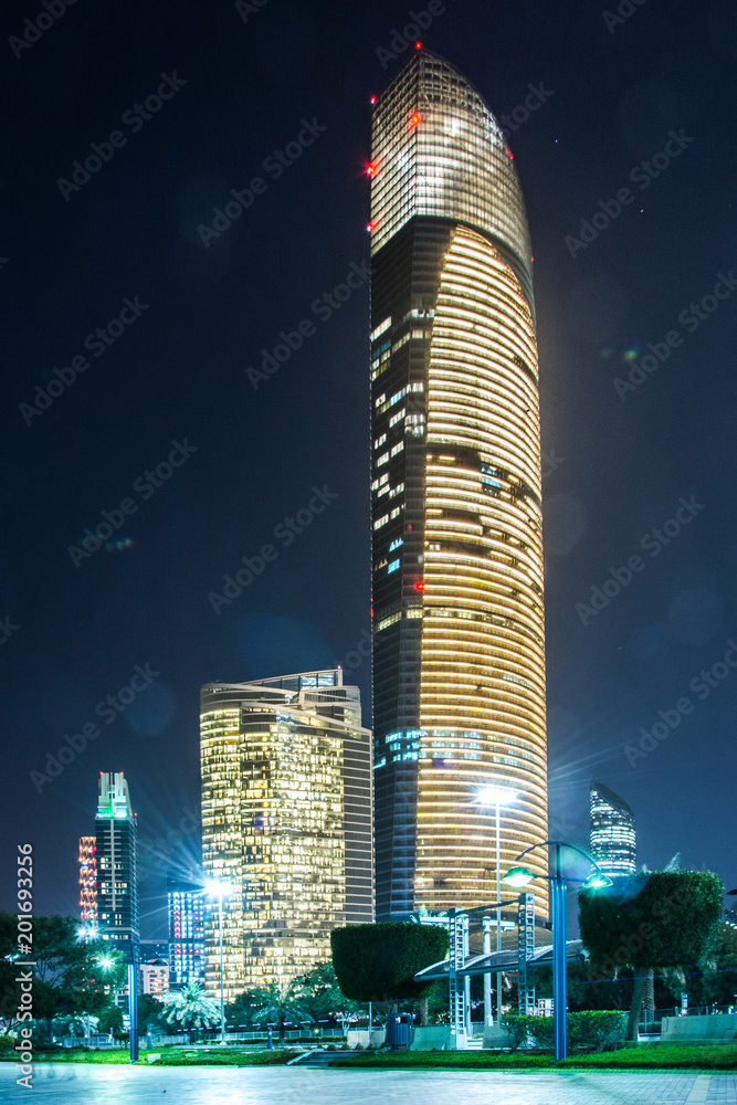 Beautiful view of Abu Dhabi skyline at night, United Arab Emirates
