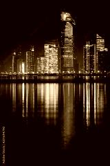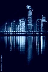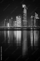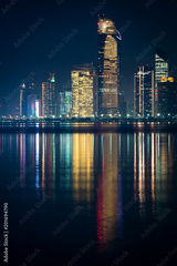 View of Abu Dhabi skyline at night, United Arab Emirates