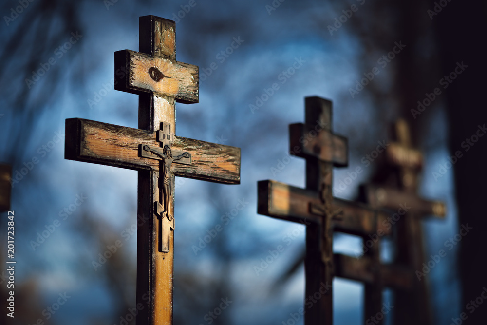 Old wooden orthodox crosses