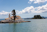 The Panagia Vlacherna Monastery of Panayia with the Mouse Island island (Pontikonissi) in Corfu, Greece