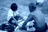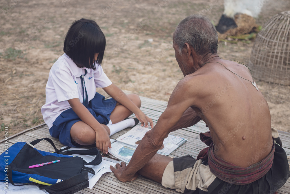 Grandfather and granddaughter at countryside.Living in rural Asia