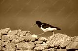 Eurasian oystercatcher walking on a stone fence