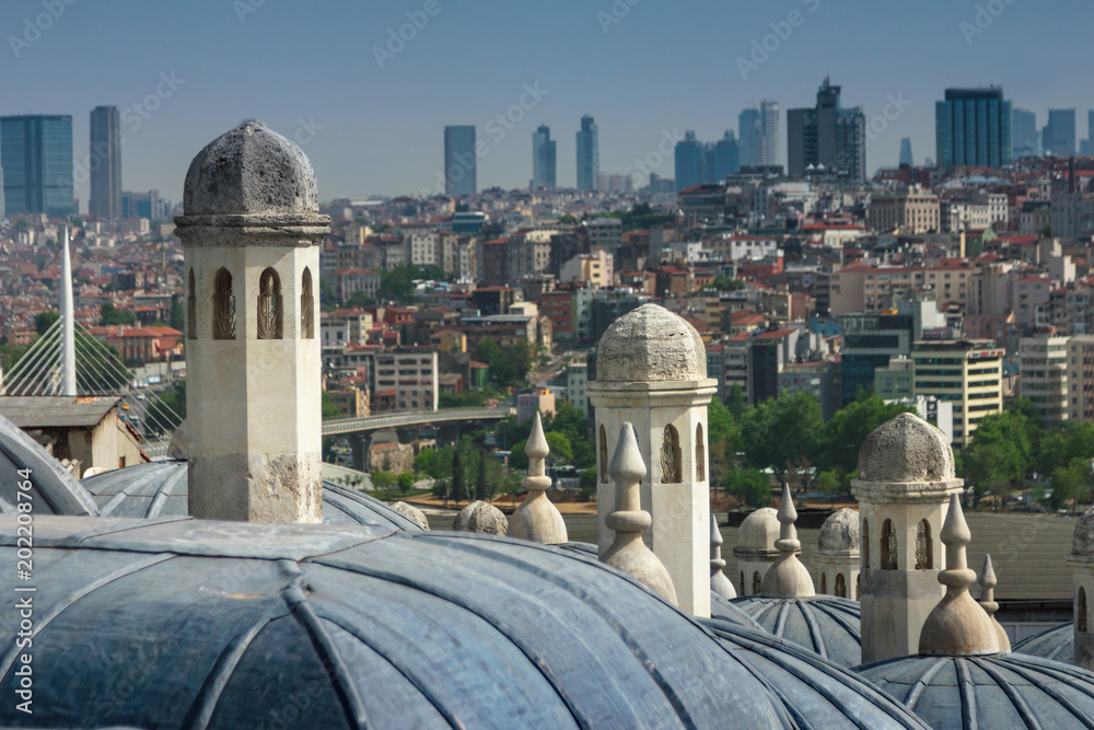 View of outer view of dome in Ottoman architecture. Roofs of Istanbul. Suleymaniye Mosque. Turkey. Selective focus.