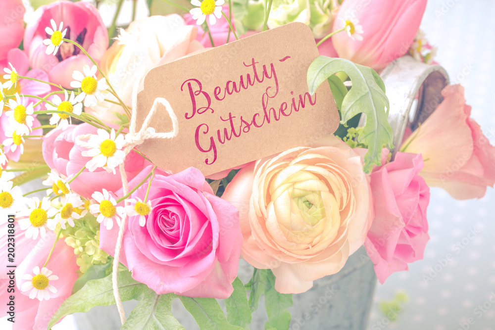 Beauty Gutschein zum Muttertag, Geburtstag - Blumen mit Grußkarte