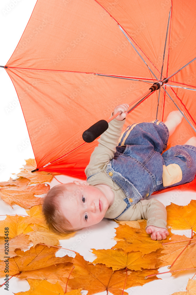 little boy and orange umbrella