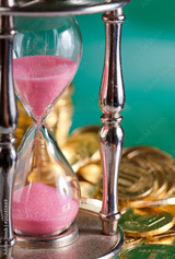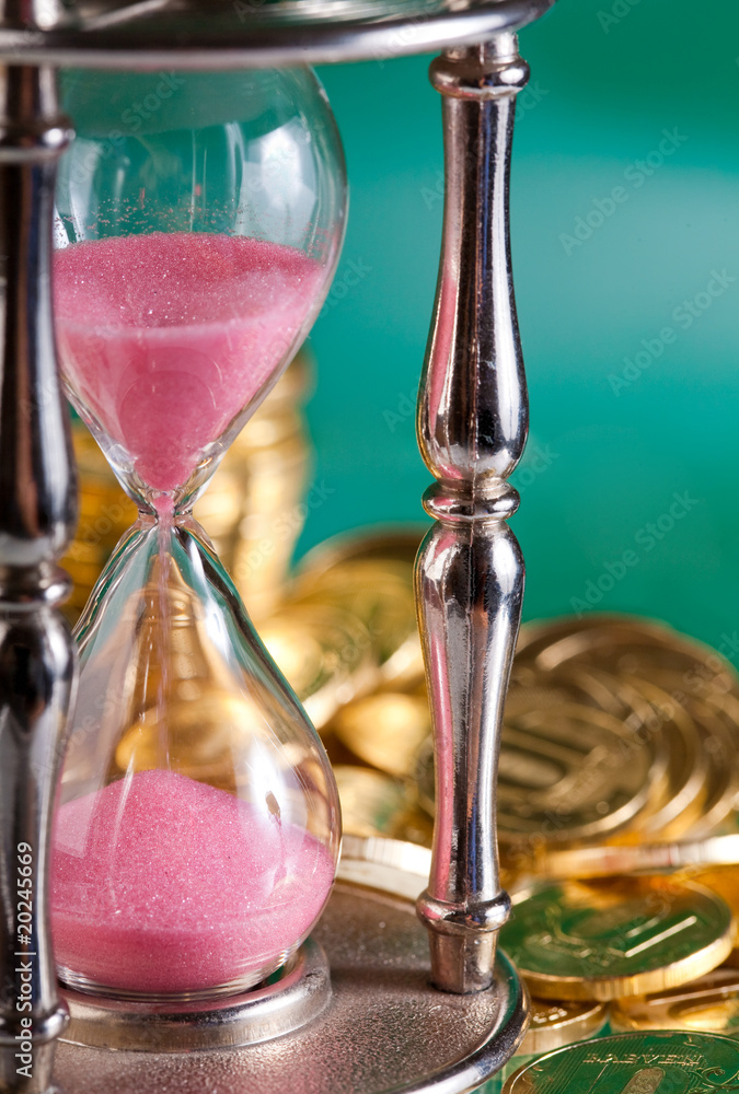 hourglass and coins