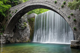 Traditional stone bridge and waterfall near Paleokaria village in Thessaly, Greece