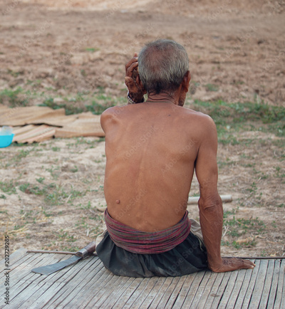 Fisherman with wicker tools.Uncle Asian fisherman with wicker tools.