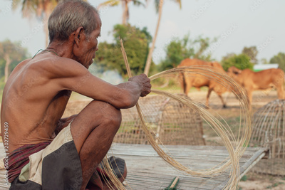 Fisherman with wicker tools.Uncle Asian fisherman with wicker tools.