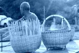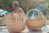 Fisherman with wicker tools.Uncle Asian fisherman with wicker tools.