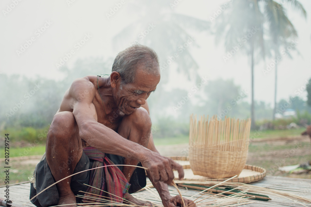 Fisherman with wicker tools.Uncle Asian fisherman with wicker tools.