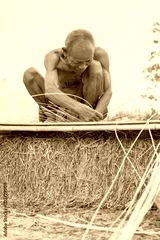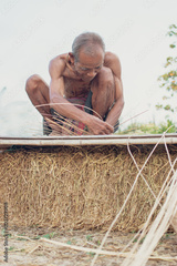Fisherman with wicker tools.Uncle Asian fisherman with wicker tools.