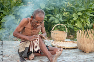 Fisherman with wicker tools.Uncle Asian fisherman with wicker tools.