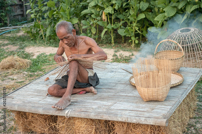 Fisherman with wicker tools.Uncle Asian fisherman with wicker tools.
