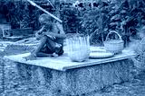 Fisherman with wicker tools.Uncle Asian fisherman with wicker tools.