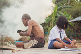 Grandfather and granddaughter at countryside.Living in rural Asia