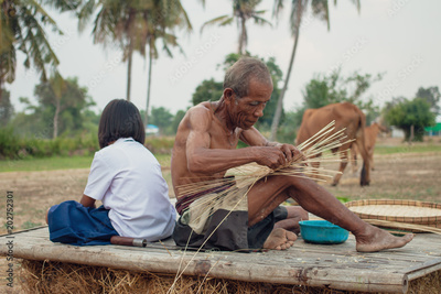 Grandfather and granddaughter at countryside.Living in rural Asia