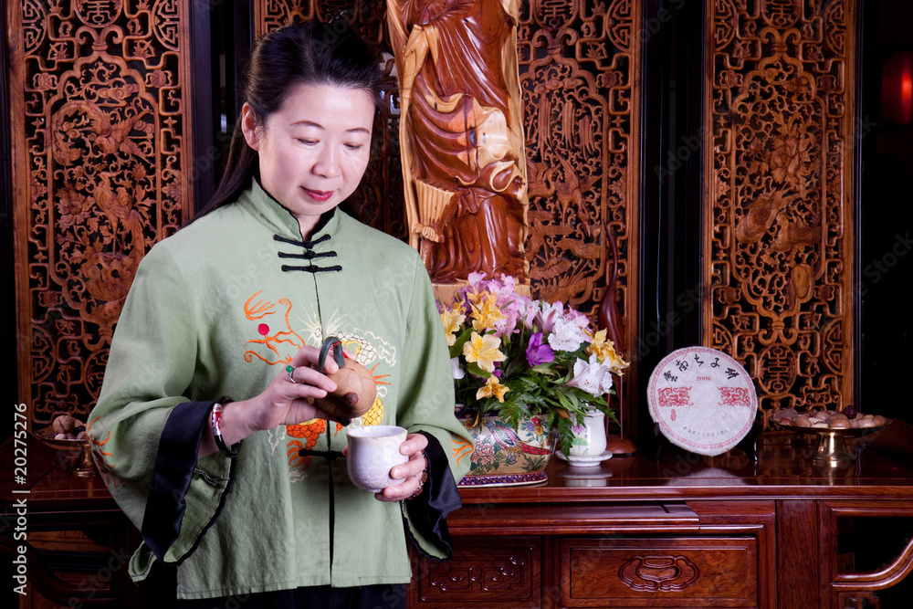 Chinese tea lady, traditionally dressed