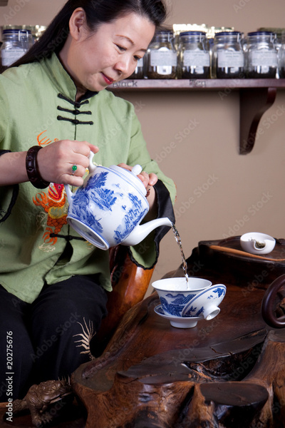 Chinese tea lady, traditionally dressed