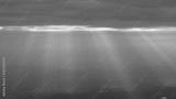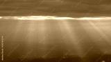 A beautiful sun rays breaking through the clouds over a mountain landscape.