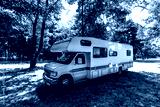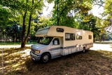 Family trip in motorhome in forest or park in South Chile
