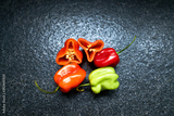 Hot peppers called "Piments Cabris" of Reunion Island on granite