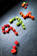 Hot peppers called "Piments Cabris" of Reunion Island on granite