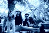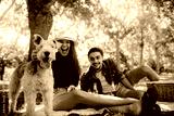 Couple on picnic with pet dog