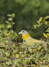 A yellow footed green pigeon eating berries inside bharatpur bird sanctuary