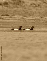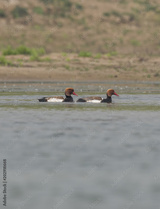Red crested Ponchard swimming in the waters of chambal river during a boat cruise