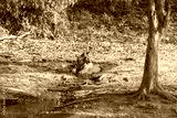 tiger cub relaxing inside bandhavgarh national park on a hot summer day