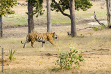An adult tiger patrolling its territory on a cold winter morning inside pench national park