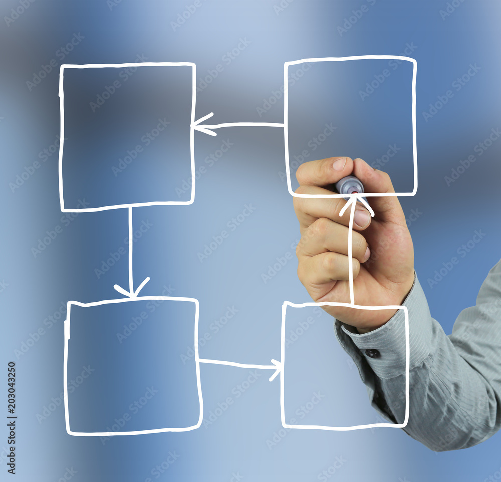 Hand of businessman point to the empty geometric shape in concept of business ideas.