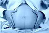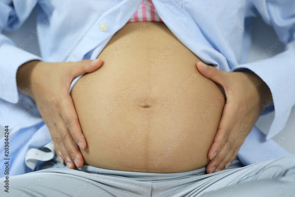 Belly of pregnant woman and have copy space.