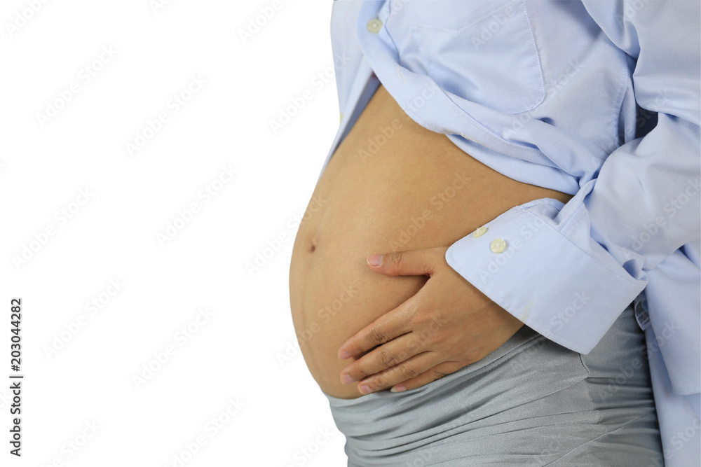 Belly of pregnant woman isolated on white background and have clipping paths.